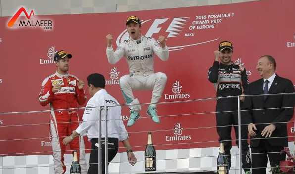 فاز الألماني نيكو روزبرغ بأول سباق يقام في أذربيجان ضمن بطولة العالم فورمولا 1 للسيارات، ليوسع الفارق مع البريطاني لويس هاميلتون، زميله في مرسيدس إلى 24 نقطة في صدارة البطولة.