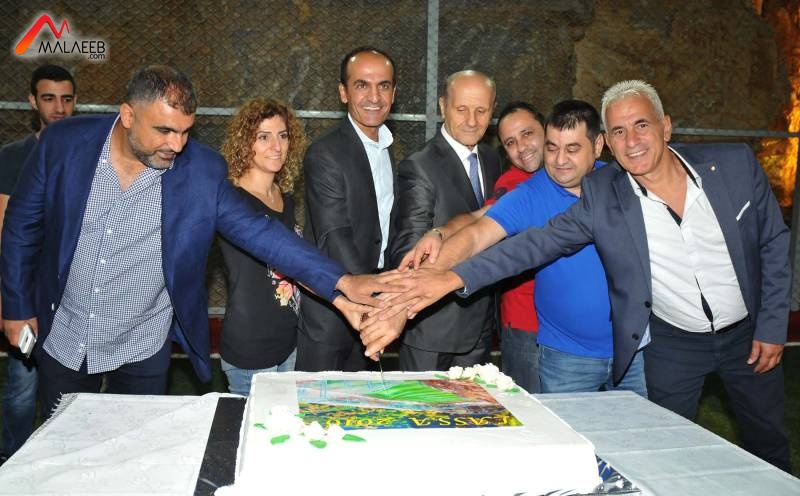 النشيد الوطني افتتاحا، ثم كلمة ترحيبية من عريف الحفل الزميل علي فواز، وتقارير متلفزة عن المكرمين، حيث كان افتتاح الملعب فرصة للدكتور أياد المقداد بتكريم الفنان صلاح تيزاني (أبو سليم)، ونجم كرة القدم اللبنانية رضا عنتر، وبطل سيف الشيش أرز زهر الدين، والأولى على الثانوية العامة في لبنان كوثر المقداد، حيث قدم لهم دروعا تذكارية، كذلك قدم لكوثر المقداد سيارة موديل 2017، ثم قدم رئيس نادي شباب الساحل المنتهية ولايته سمير دبوق قميص نادي برشلونة الاسباني للنجم رضا عنتر، وقميص ريال مدريد لمنظم الحفل بسام المقداد. وكانت كلمات بالمناسبة لشربل وخيامي وتيزاني وزعيتر واياد وكوثر المقداد ورضا عنتر وسويدان وزهر الدين.