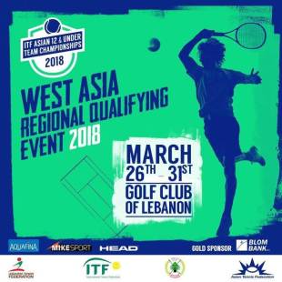 برعاية وزير الشباب والرياضة محمد فنيش، ينظّم الإتحاد اللبناني للتنس بطولة دول غرب آسيا للناشئين (تحت ال12 سنة للذكور والإناث) على الملاعب الخمسة لنادي الغولف في بيروت بين 26 و31 آذار الجاري تحت إشراف الإتحاد الآسيوي للعبة.