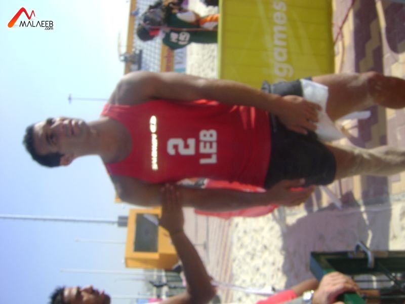 وفي الكرة الطائرة الشاطئية خرج لبنان قسريا من المسابقة بعد الاصابة المؤسفة التي لحقت باللاعب ايلي ابي شديد  خلال المباراة نصف النهائية امام عمان حيث اصيب بتمزق عضلي ولم تفلح المعالجة الطبية التي خضع لها لمعاودة المباراة التي توقفت في مستهل الشوط الثاني بعد تقدم عمان في الشوط الاول بنتيجة (21 -19) .