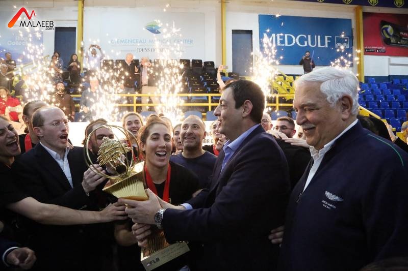 وسلم رئيس الاتحاد اللبناني لكرة السلة أكرم الحلبي كأس البطولة إلى كابتن فريق الرياضي بحضور رئيس النادي الرياضي مازن طبارة، وسط احتفالات اللاعبات والجمهور الاصفر.
