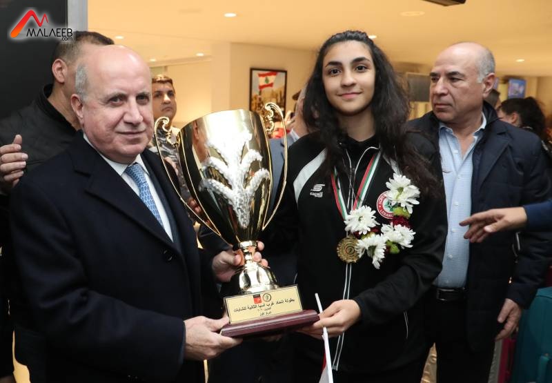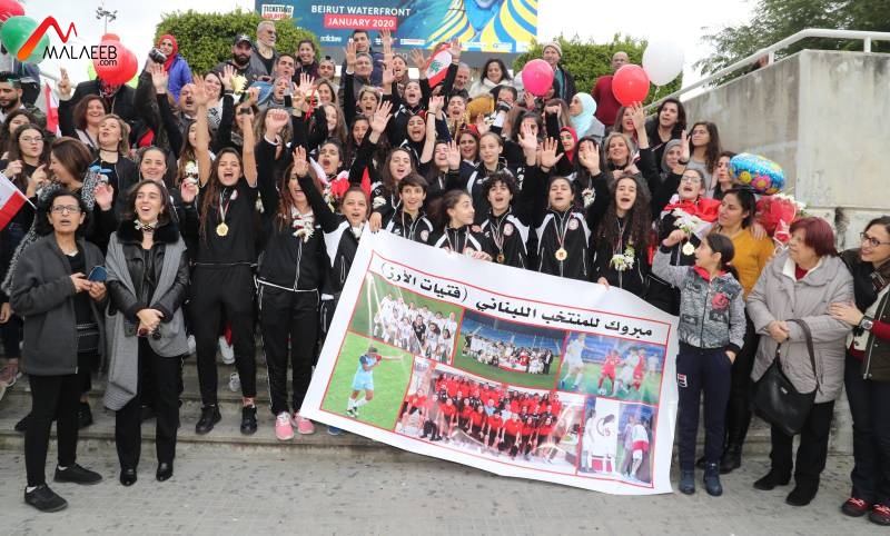 و- بيروت، وكان في استقبالها عدد من اهالي اللاعبات وأعضاء الفريق. وتقدم المستقبلين الوزير السابق وئام وهاب كونه والد كابتن الفريق ريدا وهاب، ورئيس الاتحاد اللبناني لكرة القدم الدكتور هاشم حيدر والامين العام جهاد الشحف ورئيس لجنة الكرة النسائية في الاتحاد جورج سولاج وعدد من المشجعين والمشجعات.