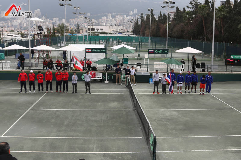 تقدّم لبنان (المصنف أول عربياً و39 عالمياً) على تايلاند (المصنفة 42 عالمياً) (1-0) في أولى مباريات الدور الاقصائي للمجموعة الآسيوية الاوقيانية الأولى لمسابقة كأس دايفيس في التنس التي تقام على الملعب الأول التابع للنادي اللبناني للسيارات والسياحة في الكسليك .