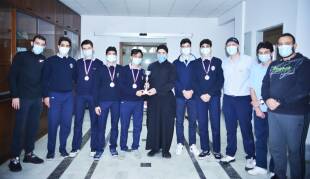 وقدّم الفريق الوصيف كأس المركز الثاني للأب سعاده بحضور مدير النشاطات الرياضية المدرب كاسبار اسحق ولفيف من المدراء حيث القى الأب سعاده كلمةً شرح فيها أهميّة الرياضة في هذا الظرف، واعتبارها المتنفّس الحقيقي لبناء شخصيّة الانسان الفاعل والقادر والمنتج.