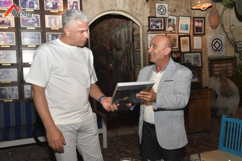 وسلم صليبا وحبيب درعين تذكارييين الى جمعة والحبسي. فيما سلم الخانجي مجسمين لملعبين من  ملاعب المونديال الى صليبا والزميل ناجي شربل.