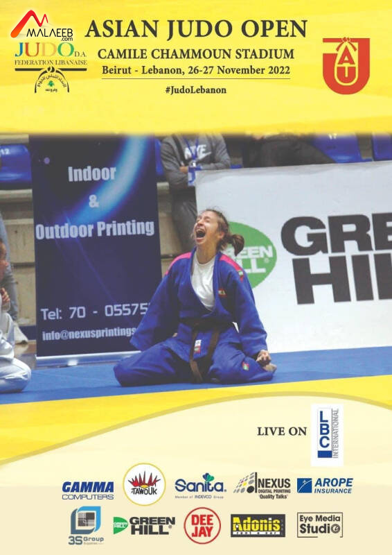 دعا الاتحاد اللبناني للجودو وفروعه الى حضور الحفل الختامي ونهائيات بطولة آسيا المفتوحة في الجودو للرجال والسيدات وذلك عند الساعة 17.00 من مساء الأحد المقبل 27 تشرين الثاني الجاري وذلك في قاعة الشيخ بيار الجميّل التابعة لمدينة كميل شمعون الرياضية في بيروت.