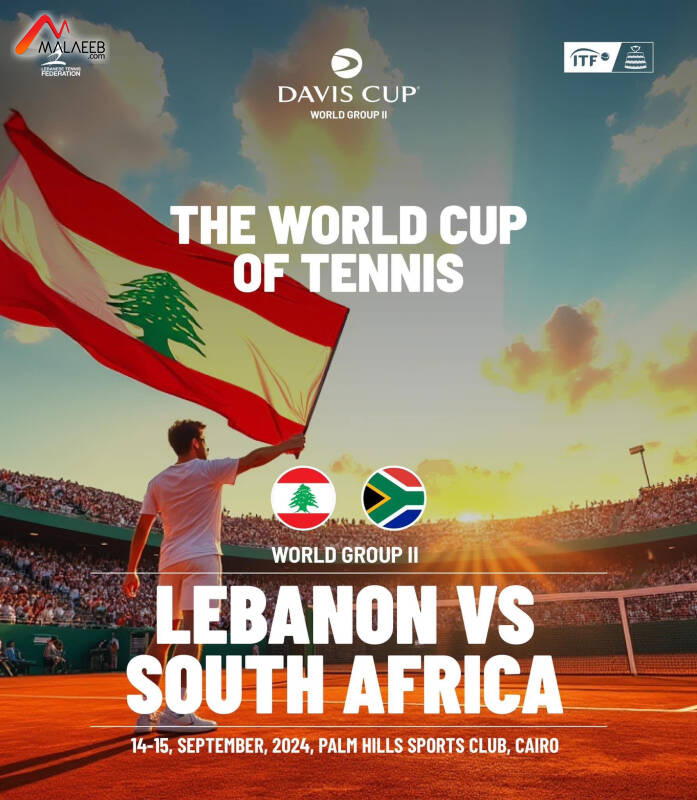 سيخوض فريق لبنان لكأس دايفيس في التنس، مواجهة هامة ضد فريق جنوب افريقيا في 14 و15 ايلول الجاري على الملعب الأول التابع لنادي "بالم هيلز سبورتس كلوب" في العاصمة المصرية القاهرة في اطار المجموعة العالمية الثانية، والفائز في هذا اللقاء سيخوض لقاءاً فاصلاً في بداية العام المقبل ضد دولة ستحددها القرعة لاحقاً على ان يتأهل الفائز في هذه المواجهة الى المجموعة العالمية الأولى.